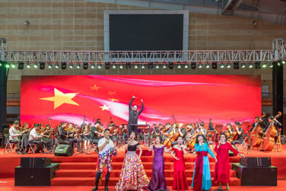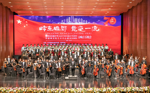 9月27日,28日晚,“岭东雄郡 竞逐一流”惠州市庆祝中华人民共和国成立70周年暨惠州文化艺术中心惠民10周年交响音乐晚会在惠州文化艺术中心举行。本次演出一共开展两场,由惠州学院交响乐团承办。本次交响音乐晚会由惠州学院交响乐团担任音乐演奏,惠州学院交响乐团合唱团担任和声伴唱,歌唱演员则邀请了原创歌曲的原唱者以及部分省市著名歌唱家参演,为新中国70周年华诞献礼。