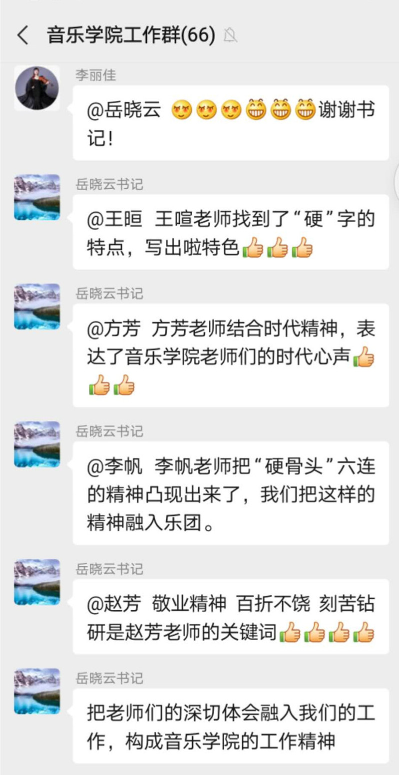 为贯彻中宣部和学校党委的文件精神,7月29日晚21:00,音乐学院党总支统一部署,我院组织全体教师观看CCTV-1“时代楷模发布厅”节目,随后学院微信工作群展开了热烈讨论,全体教师发表了学习感想。此次活动旨在发挥党员教师的引领作用,带领全体教师学习参与先进典型案例学习,将"爱国、敬业、诚信、友善"的价值准则融入到教学工作中,以“课程思政”、“三全育人”、“立德树人”等内容为抓手,发挥党建工作的引领作用。