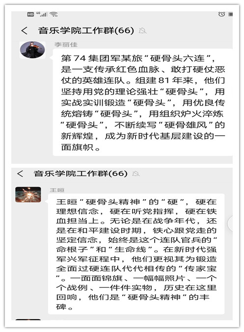 节目介绍了陆军第74集团军某旅“硬骨头六连”的先进事迹,硬骨头六连能打胜战、勇于牺牲、勇于创新的精神值得学习。学院党总支书记岳晓云指出,希望老师们把深切的体会融入到工作中,赋予“硬骨头六连”精神以新的时代内涵,将敬业精神、百折不挠、刻苦专研的精神融入到学院的工作精神中,积极作为,埋头苦干。
