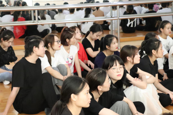 上午,刘琦以舞蹈对人的作用这个问题为导向,举出疫情期间方舱医院护士带领病人跳起舞的例子,得出舞蹈让人感受到了生命的存在这个本质作用。从原始社会的肢体语言各动物的生理反应证明舞蹈是从生命里来的,指出艺术是精神的食粮是内心的需求、需要,并提醒学生多关注自己的内在状态与心态,经常问自己为什么要跳舞?为什么要教舞?为什么要编舞?从巫师、广场舞、街舞、宫廷舞等例子说明舞蹈是服务与享受同在的。提出自己的期望是让所有人不羞于舞动自己的身体使精神内心与肢体一致,并发动公共工作者积极去为此做出努力。课上,刘琦与广大师生分享了自创作品《萋萋长亭》、《暗战》、《临池》、《山水》,并讲述了作品背后的故事,引导学生们跳舞要放眼看社会,从本能的自然生命状态而舞。