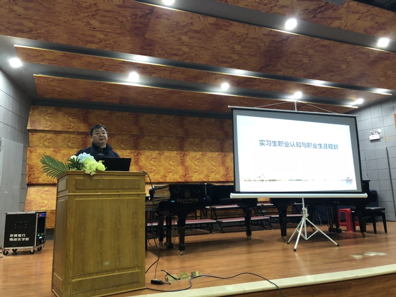 吴仕东校长为大家作实习生职业认知与职业生涯规划专题讲座。吴校表示,在全面推进和实施素质教育的今天,作为音乐教师,要有良好的音乐基本功、良好的文化素质以及较高的职业技能与道德修养等,知识不能只仅限于自己的主专业,要“一专多能”,多方面拓宽知识面,不断提高自身教学能力,要从理论、实践和师德修养等方面下工夫,才能更好的指导音乐教育实践。作为一名即将就业的毕业生,能否对自己未来的职业生涯有周全的设计和规划,决定着其毕业后能否在就业市场上占有一席之地。吴校就职业生涯规划的现状入手,究其原因,分析了职校毕业生进行职业生涯规划的必要性和迫切性,阐述了进行职业生涯规划需掌握的基本要素和关键步骤。