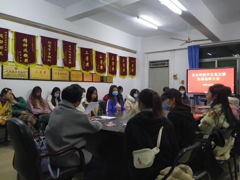 会上,王婷同志对本届委员会工作情况进行了汇报。随后学生党员审议并表决通过学生党支部委员会候选人名单,大会依次通过了《音乐学院学生党支部换届选举办法(草案)》、监票人和计票人名单。王婷同志介绍候选人基本情况,随后大会按照差额选举的方式选出王婷、钟思涛、李颖然为新一届学生党支部支委委员。随后,音乐学院学生党支部委员会召开第一次全体会议,按照等额选举的方式选举王婷为音乐学院学生党支部书记。古爱琼副书记对新一届支委和党员学生们提出新的要求和期望,希望学生党员能严于律己,在学习生活中发挥先锋模范作用。