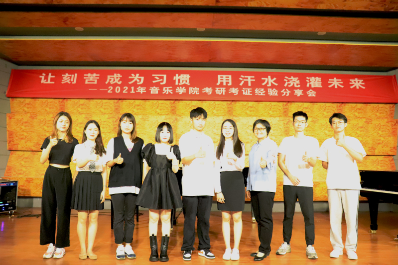 为进一步加强学风建设,提升同学考研考证的学习热情,2021年5月20日下午14:30,我院在音乐楼101排演厅举办以“让刻苦成为习惯 用汗水浇灌未来” 为主题的考研考教师资格证经验分享会。音乐学院党政领导班子、辅导员、教师代表、2019级和2020级全体学生和其他年级学生代表约200人参加了本次会议。