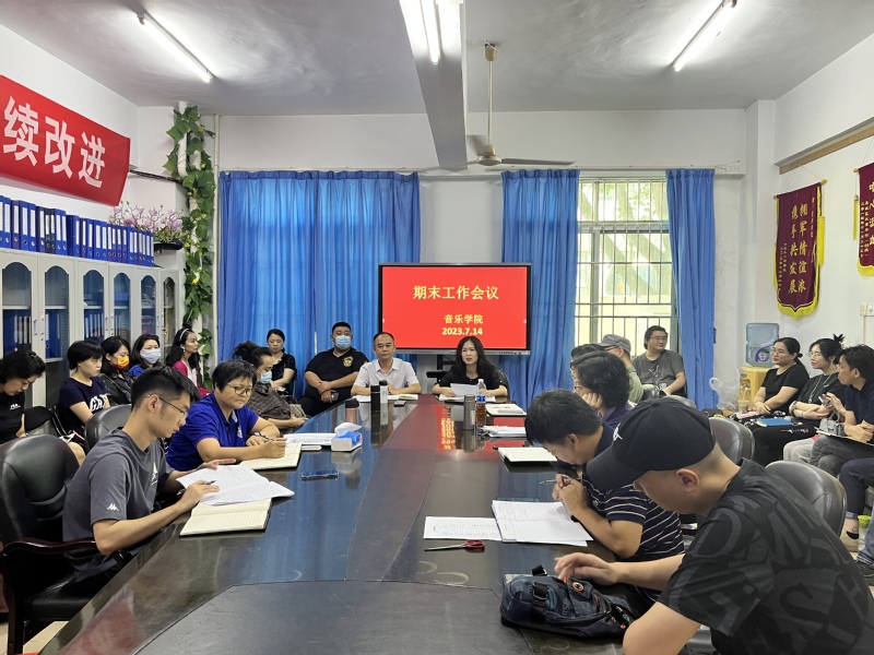 7月14日下午,音乐学院在音乐楼103会议室召开期末工作总结会议,党政班子及全体教职员工出席会议,会议由学院党总支书记曾裕林主持。