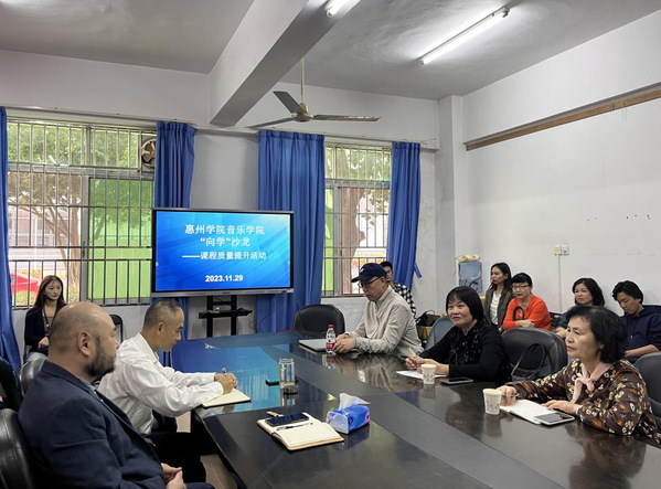 2023年11月29日下午,音乐学院召开“向学”沙龙——课程质量提升活动。活动由张礁副院长主持,音乐学院全体专任老师参加。校督导吴映萍副教授讲述了自身感悟,在她的从教生涯中,始终以“四有”好老师的标准要求自己,做立德树人表率。她希望每一位老师都能热爱自己的职业,做一个有仁爱之心的好老师。