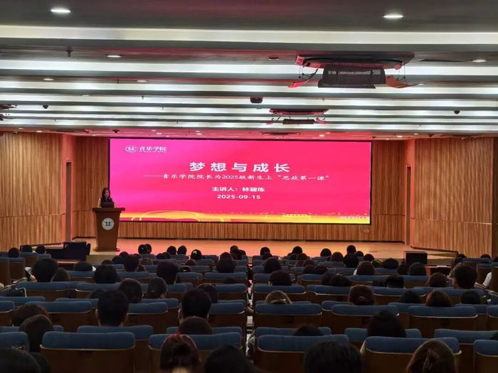 9月15号上午,我院在旭日科技大楼A座201报告厅举行学院音乐学院2025级新生见面会暨“思政第一课”。学院党委书记曾裕林、院长林碧炼教授分别以《珍惜韶华,不负青春,做一名有为的大学生》和《梦想与成长》为主题,为2025级音乐学子带来了一场深刻而温暖的开学第一课。