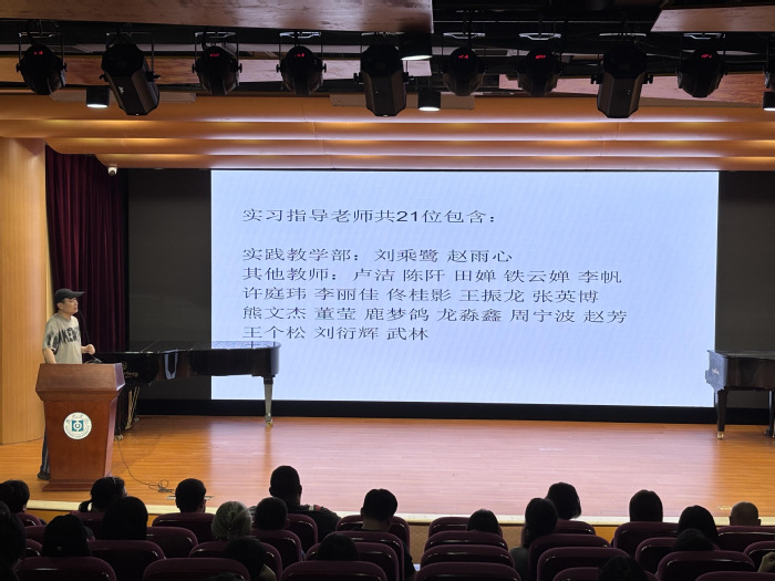 2025年9月10日,惠州学院音乐学院在学院排演厅隆重召开2026届实习动员大会,正式启动新一届实习工作。21位实习指导教师与146名实习生参会,会议由学院实践教学部主任刘乘鹭老师主持。