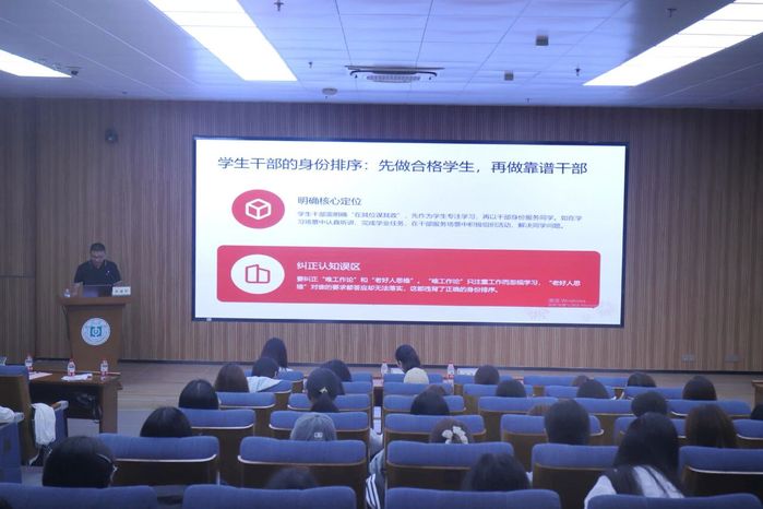为持续强化学生干部队伍的根基建设,着力提升学生干部的综合素养与责任担当意识,推动学院学生工作实现质量与效率的双重提升,音乐学院于10月30日下午在科技楼A302报告厅开展第一期学生干部专题培训会。本次活动邀请学校团委副书记,能源与物理学院副书记郭德厚主讲,我院辅导员黄昌莉、李巧敏及全体学生骨干参加本次培训。