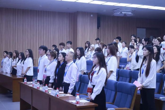 国歌响起,全场学生代表肃立致敬,本次学生代表大会迎着朝气,正式开始本次庄严的会议。