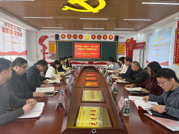 惠州学院调研座谈会上,音乐学院曾裕林书记称,音乐学院红色音乐文化有专长,高校红色文化底蕴厚,双方可在学生暑期“三下乡”、打造红色音乐旅游线路、融合红色故事与音乐创作作品、开展研学活动等领域合作,探索校地企业联动模式。机关党委邓淑容书记提出党建共建设想,以主题党日、党员志愿服务提升党建水平。邬强部长总结,强调“双百行动”是一项政治任务,学校十分重视,将发挥多方优势,与叶挺红军小学建立长期合作,围绕课程、师资、党建等制定方案,助力学校发展,共育全面发展人才。