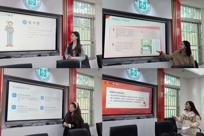 会上,各主席团成员依次进行述职,系统汇报本学期工作成果,剖析存在的问题,并提出改进措施与下一步计划。